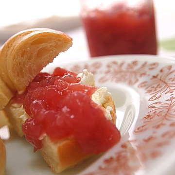 その上からようやく先日仕込む事の出来た自家製ピーチジャムを。