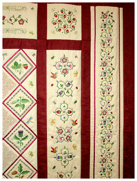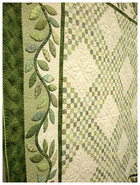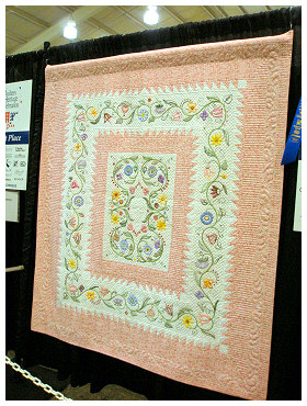 近頃の流行りか、去年は気が付かなかったのか、今年はこのような刺繍をふんだんに使ったキルト作品が多く目につきました。