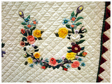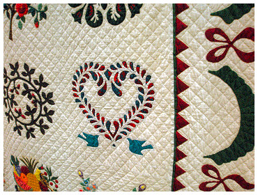 お友達の作品や、写真の作品ほど凝った技法のモノではありませんが、私も今、作りかけのボルチモアキルトを早く完成させたくなってきました。