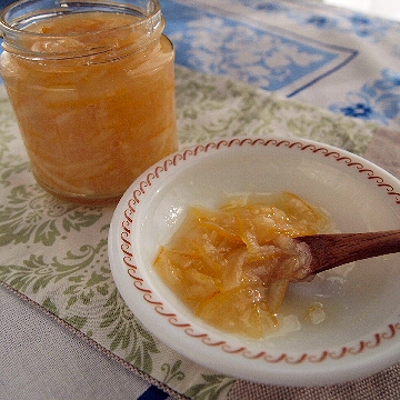 果汁を搾った後、ピールを刻んで揉み洗い。