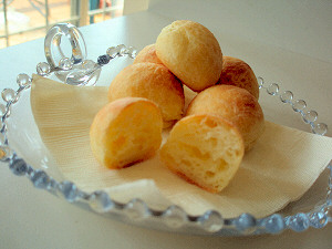 タピオカ粉と薄力粉、バター、チーズ、卵、牛乳などで生地を作り、一口大に丸めてオーブンで焼き上げます。