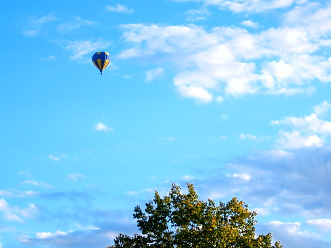 指さす方向を見上げると気球が散歩中でした。